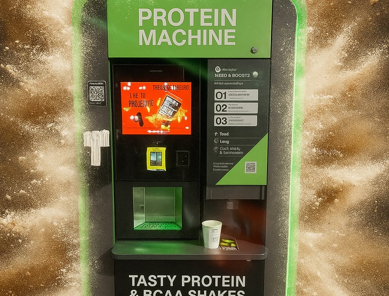 Choisissez votre boisson protéinée sur l'écran, déposez votre shaker ou un verre et savourez !